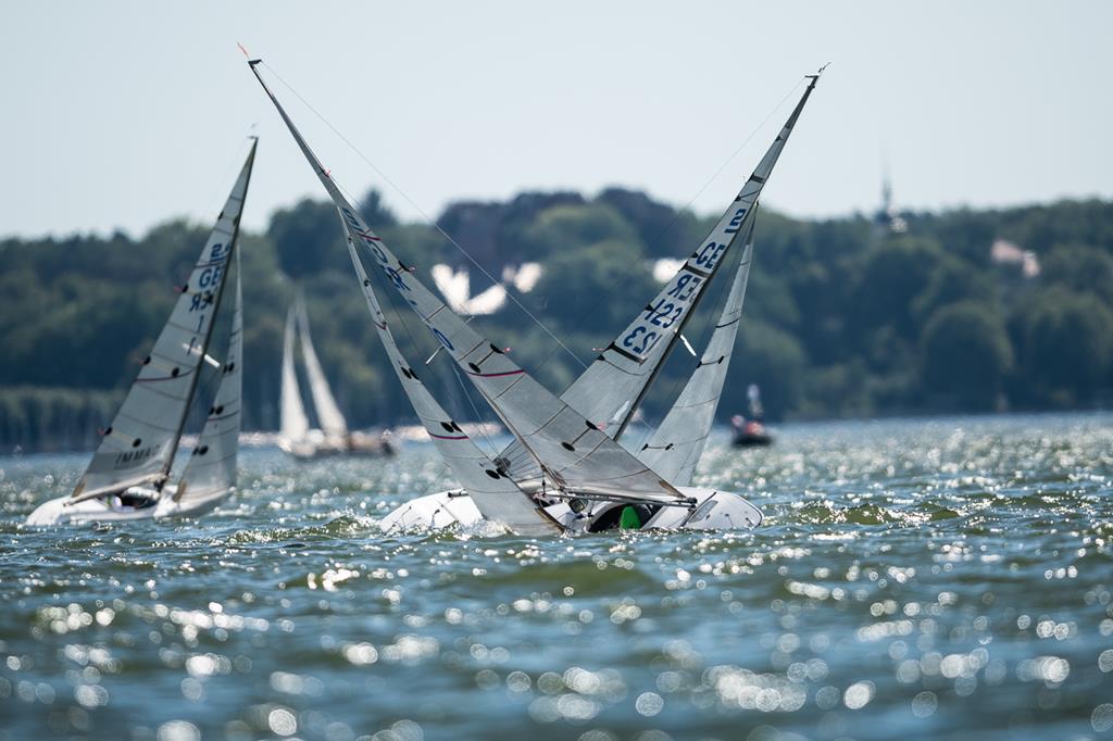 Schweriner See – Packende Zweikämpfe, taktische Raffinesse und am Ende ein Berliner Triumph: Die Crew der R 1455 Aquaholic mit Steuermann Ralf Jambor, Thomas Bechert und Bootsbaumeister Martin Herbst (alle TSG 1898) hat sich bei der German Open 2025 der 20qm Jollenkreuzer souverän den Gesamtsieg gesichert!