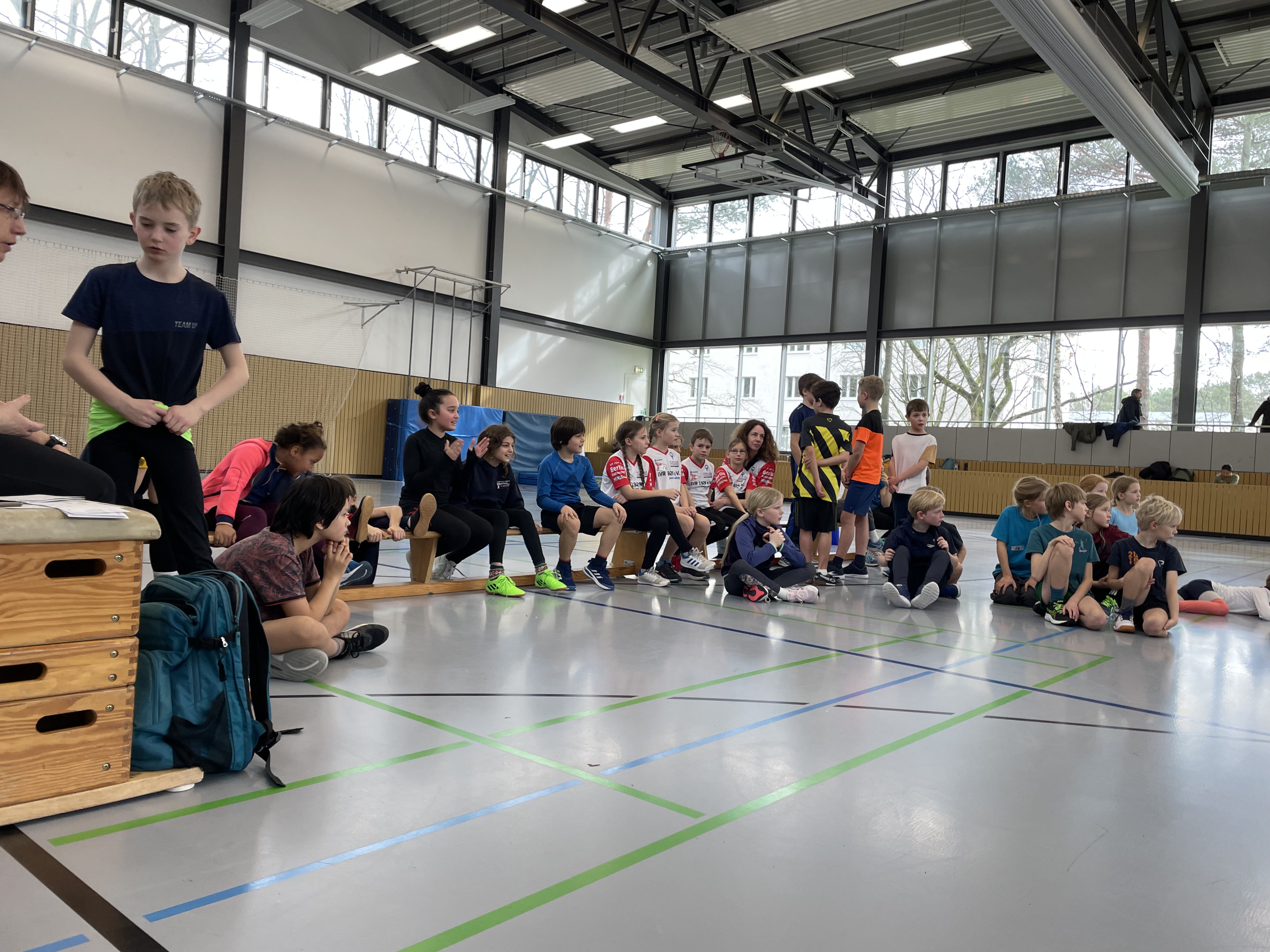 In der Halle war wieder eine sehr gute Stimmung, jeder war zwar mit sich beschäftigt, doch wenn man jemanden zum Anfeuern beim Gewandheitstest hatte, wurde lautstark angefeuert und die Freunde über den Parcours gejagt.